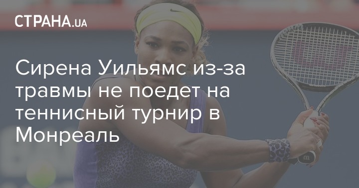 Первая ракетка мира американка Серена Уильямс пропустит теннисный турнир Rogers Cup в Монреале, который пройдёт с 7 по 13 августа из-за повреждения плеча. Об этом сообщается на сайте Женской теннисной ассоциации (WTA).