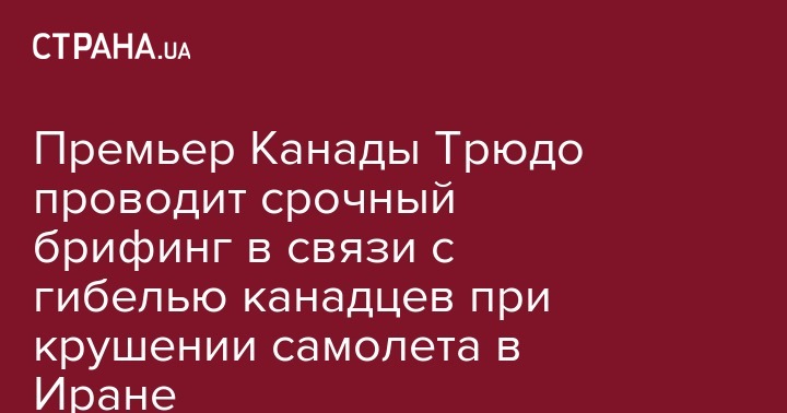 Премьер Канады Трюдо проводит срочный брифинг в связи с гибелью канадцев при крушении самолета в Иране