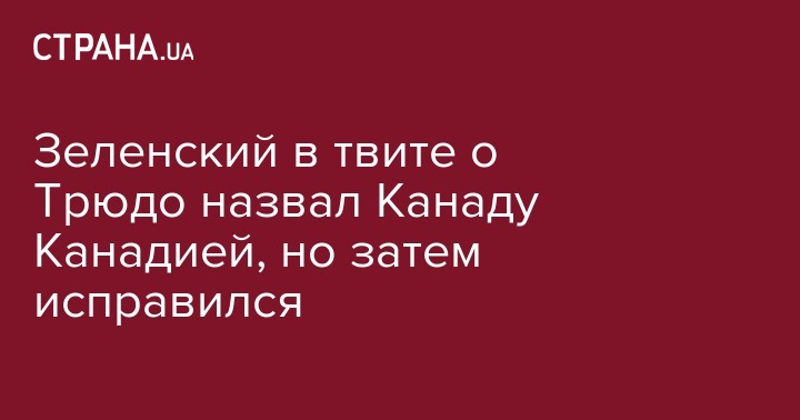 Зеленский в твите о Трюдо назвал Канаду Канадией, но затем исправился
