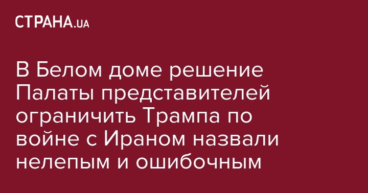 В Белом доме отреагировали на резолюцию Палаты представителей США, которая ограничивает военные полномочия президента США по Ирану. Данный документ назван "нелепым" и "абсолютно ошибочным".