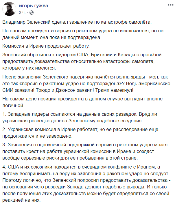 "После заявления Зеленского наверняка начнётся волна зрады - мол, как это так "версия о ракетном ударе не подтверждена"? Ведь американские СМИ заявили! Трюдо и Джонсон заявил! Трамп намекнул!