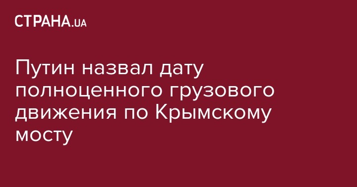Путин назвал дату полноценного грузового движения по Крымскому мосту