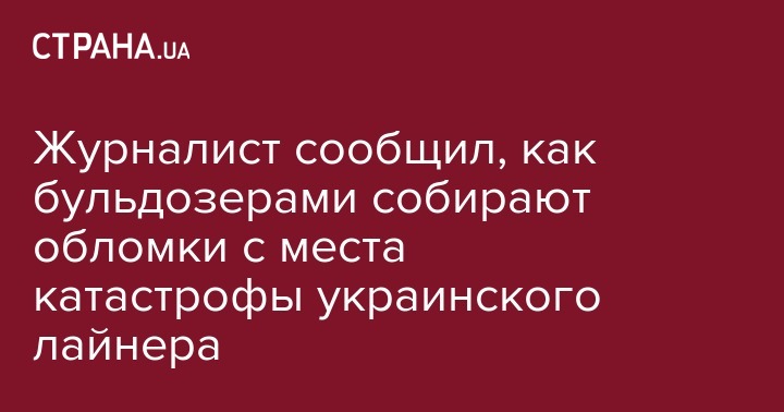 Главный редактор сайта Цензор.нет описал, как на месте катастрофы украинского лайнера под Тегераном происходит сбор обломков: их неорганизованно сгребают тяжелой техникой. Пост на эту тему он разместил в своем Facebook, ссылаясь на источник из межведомственной комиссии по расследованию трагедии.