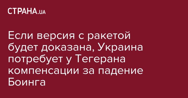 Если версия с ракетой будет доказана, Украина потребует у Тегерана компенсации за падение Боинга