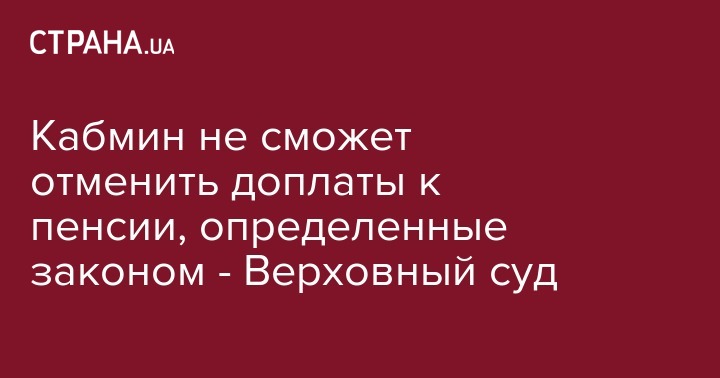 Кабмин не сможет отменить доплаты к пенсии, определенные законом - Верховный суд