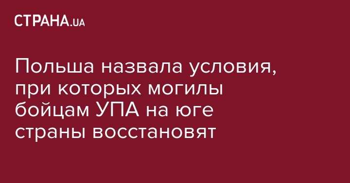 Директор отдела чествования борьбы и мученичества польского Института национальной памяти Польши Адам Сивек заявил, что разрушенные могилы бойцов УПА на юге Польши восстановят в том случае, если власти примут некоторые политические решения, а в нормативные документы о военных захоронениях внесут изменения.