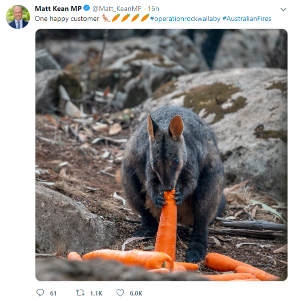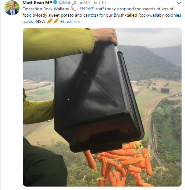 Австралийские власти доставили тонны корма для животных по всему Новому Южному Уэльсу, которые пострадали от пожаров. Об этом в своем Twitter написал министр энергетики и окружающей среды Мэтт Кин.