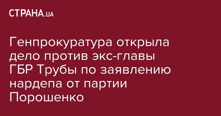 Ранее партия Петра Порошенко "Европейская солидарность" потребовала возбудить уголовное дело против экс-главы Госбюро расследований Романа Трубы. В политсиле настаивают, что уголовное преследование Генпрокуратуры должно коснуться не только бывшего директора ГБР, но и фигурантов так называемых "пленок Трубы".