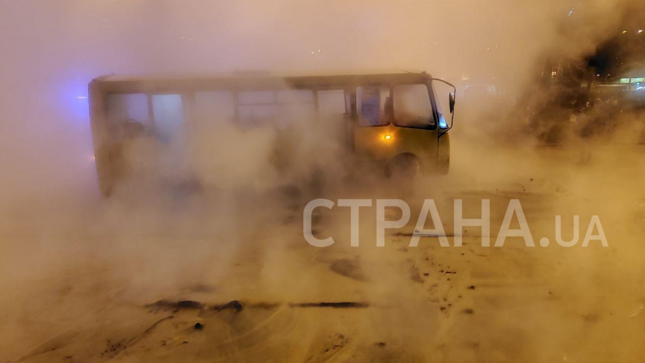 Также пары кипятка везде вокруг торгового центра. Киевляне перепрыгивали через огромные горячие лужи.