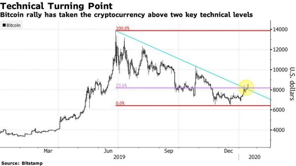 Во вторник, 14 января, среднерыночная стоимость биткоина выросла на 5,5% - до 8574 долларов. В целом за первые две недели 2020 года биткоин подорожал на 20%. Об этом пишет Bloomberg.