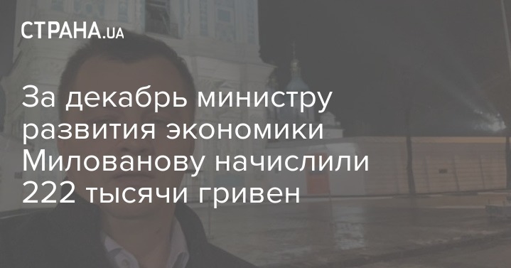 Стало известно, сколько начислено за декабрь министру развития экономики, торговли и сельского хозяйства Тимофею Милованову: 222,6 тысяч гривен. Такая сумма указана в ответе министерства на запрос агентства "Украинские новости".
