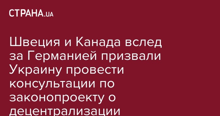 Представители Канады и Швеции призвали украинские власти провести всеобъемлющие общественные консультации по теме нового законопроекта о внесении изменений в Конституцию по децентрализации.