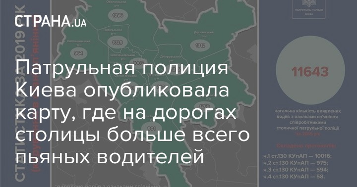 Патрульная полиция Киева опубликовала карту, где на дорогах столицы больше всего пьяных водителей