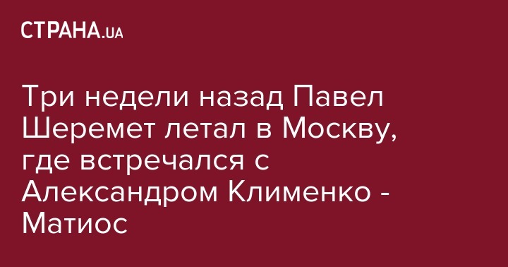 Заместитель генерального прокурора - главный военный прокурор Анатолий Матиос заявляет о встрече убитого журналиста интернет-издания "Украинская правда" Павла Шеремета с бывшим министром доходов и сборов Александром Клименко в России в начале июля.