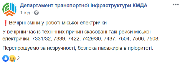 Скриншот: Facebook/ Департамент транспортної інфраструктури КМДА