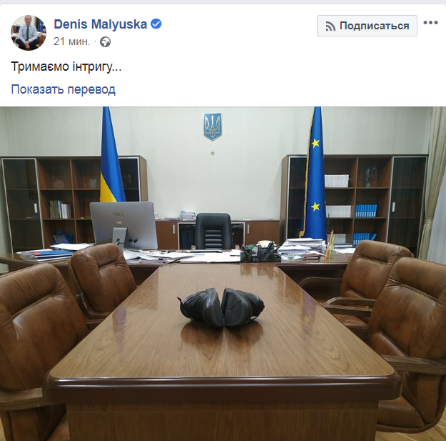 16 декабря Малюська выложил в соцсети фото из своего кабинета с башмаками на столе. Загадочный кадр появился на странице министра на фоне слухов об отставке.