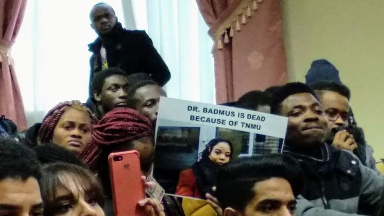 Как уточняет СМИ, Бадмус не сдала экзамен по педиатрии с третьей, то есть последней попытки, и была представлена на отчисления из вуза. Из-за этого студенты и собрались в актовом зале медуниверситета им. Горбачевского. Некоторые из них держали в руках плакат с текстом "DR. Badmus is dead because of TDMU" ("Доктор Бадмус мертвая из-за ТГМУ"- Ред.). Их требования были: меньшее количество вопросов  не столь сильная жесткость на экзаменах, уменьшение количества членов комиссии, а также возможность сдавать экзамен более трех раз.