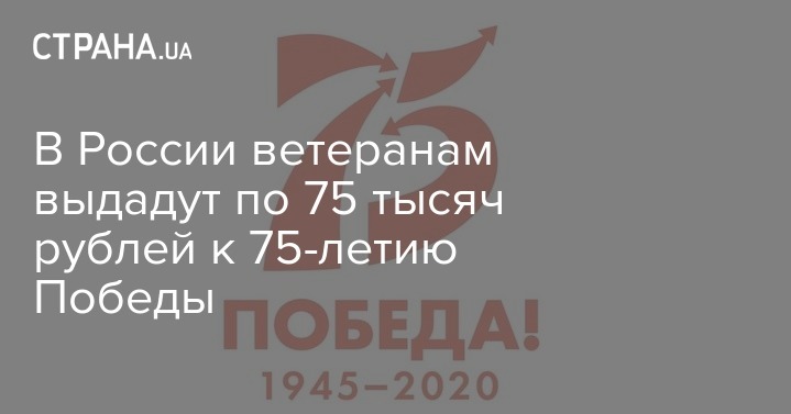 В России единовременная выплата по случаю 75-летия Победы в Великой Отечественной войне составит 75 тысяч рублей для каждого ветерана (29 тысяч гривен, 1200 долларов или 1095 евро) и 50 тысяч рублей для тружеников тыла (19 тысяч гривен, 812 долларов, 734 евро).
