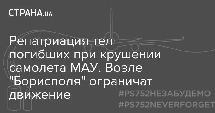 В воскресенье, 19 января, будут введены незначительные ограничения на дорогах в районе аэропорта "Борисполь" в Киеве в связи с тем, что в Украину будут репатриированы тела погибших на борту украинского лайнера МАУ в авиакатастрофе под Тегераном. Такая информация появилась на сайте Управления государственной охраны (УГО).