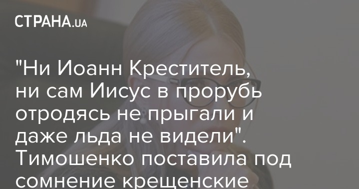 В этом году в Украине замерзшие реки в большом дефиците. Аномальная теплая зима помешала крещенским ныряниям. Но это - не беда ... Могу вас заверить, что ни Иоанн Креститель, ни сам Иисус в прорубь отродясь не прыгали и даже льда не видели. Потому что жили совсем в другом климате", - заявила Тимошенко.