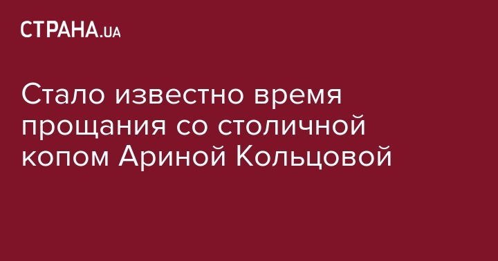 Завтра, 27 июля, в Киеве будут прощаться с известной столичной копом Ариной Кольцовой. Как написала на своей странице в Facebook коллега Кольцовой Анна Онофрийчук, прощание состоится на бул. Перова, 20 в 11:00.