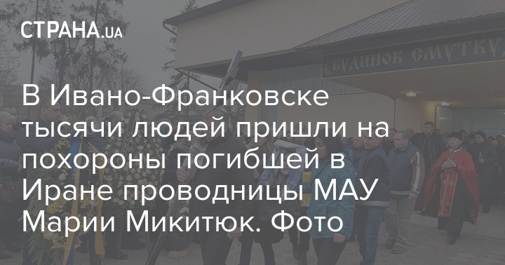 В понедельник, 20 января, в Ивано-Франковске попрощались с погибшей при крушении авиалайнера МАУ в Иране 24-летней бортпроводницей Марией Микитюк. Траурная церемония собрала тысячи людей возле ивано-франковского Дома грусти, пишет "Западный аргумент".
