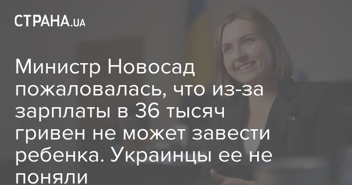 Министр Новосад пожаловалась, что из-за зарплаты в 36 тысяч гривен не может завести ребенка. Украинцы ее не поняли