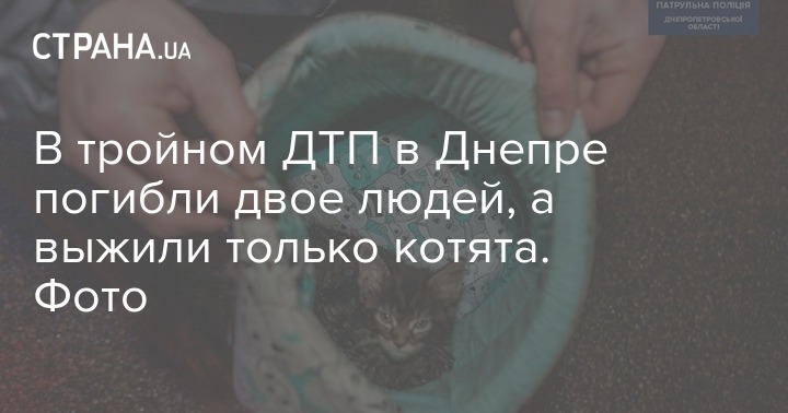 В Днепре произошла смертельная авария, в которой погибли два человека и уцелели двое котят, которых уже отправили в коммунальное предприятие "Зооконтроль".