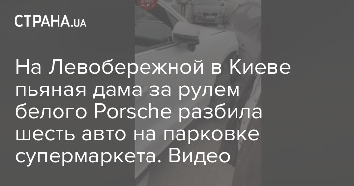 На Левобережной в Киеве пьяная дама за рулем белого Porsche разбила шесть авто на парковке супермаркета. Видео