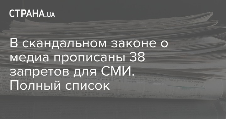 В этом месяце комитет Верховной Рады по вопросам гуманитарной и информационной политики рекомендовал депутатам принять за основу проект закона о медиа, где перечислили 38 запретов. В законопроекте есть ряд ограничений - в частности, в структуре новостей, их содержании, а также языке.