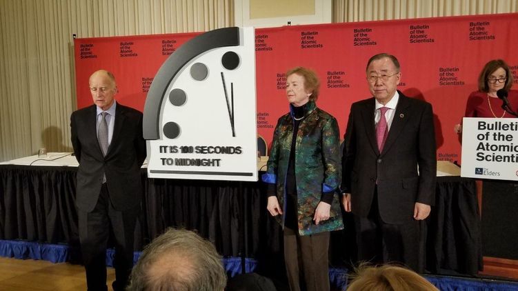 Основной причиной сегодняшнего перевода стрелок вперед стал рост ядерной угрозы из-за конфликта США и Ирана, разрыва Договора о ракетах средней и меньшей дальности и отсутствия прогресса в разоружении КНДР. Среди второстепенных факторов приближения глобальной катастрофы фигурируют недостаток усилий по борьбе с изменением климата и рост числа фейковых новостей в интернете.