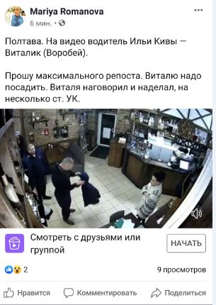 В соцсетях пишут, что мужчина на видео - водитель Ильи Кивы. В интернет-издании Полтавщина пишут, что буян - бывший член криминальной группировки "бригада Басистого" 34-летний полтавчанин Виталий Воробьев по прозвищу "Воробей", хороший знакомый нардепа Ильи Кивы. По данным издания, это бывший водитель нардепа.