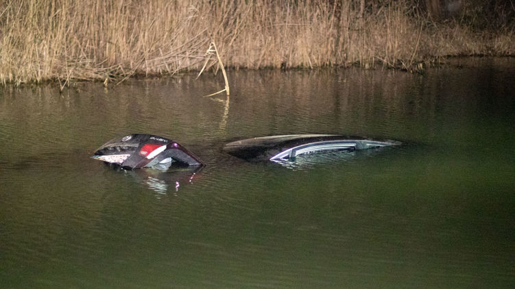 После того, как машина пошла на дно, водителю и 9-летнему мальчику удалось выбраться на берег. Ребенок в реанимации.