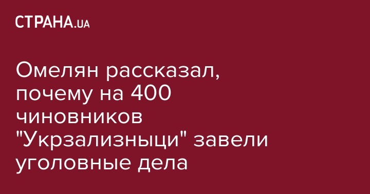 В отношении сотрудников "Укрзалзныци" в настоящее время расследуют 400 уголовных дел. Об этом сообщил министр инфраструктуры Владимир Омелян, передает Интерфакс-Украина.