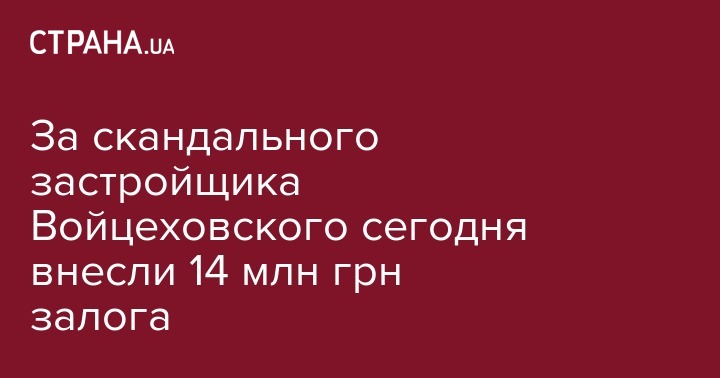 Как сообщала "Страна", скандального застройщика Войцеховского арестовали с залогом в 14 млн. Печерским судом на два месяца был арестован застройщик Анатолий Войцеховский с залоговой суммой в 14 млн грн при том, что прокуроры изначально просили о залоге в 50 млн грн.