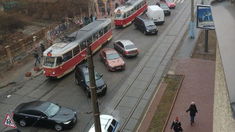 В Киеве, 29 января. около 09.00 произошло два ДТП из-за которых было заблокировано движение трамваев сразу по двум улицам.