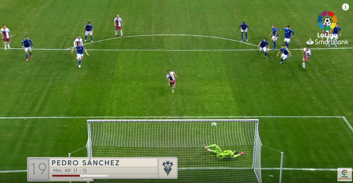 Андрей Лунин отбивает пенальти, скриншот LaLiga SmartBank