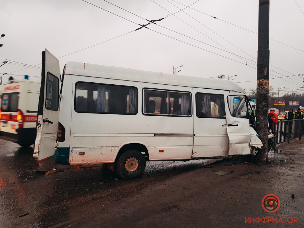 последствия столкновения маршрутки со столбомФото: dp.informator.ua