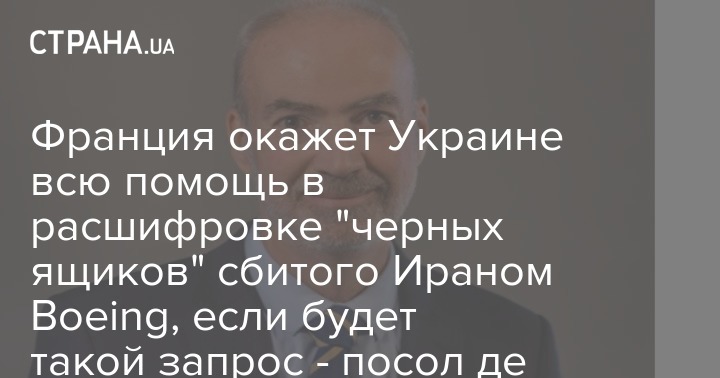 Посол Франции в Украине Этьен де Понсен заявил о том, что официальный Париж готов оказать Киеву всю возможную помощь в расшифровке "черных ящиков" со сбитого иранскими военными лайнера авиакомпании МАУ.