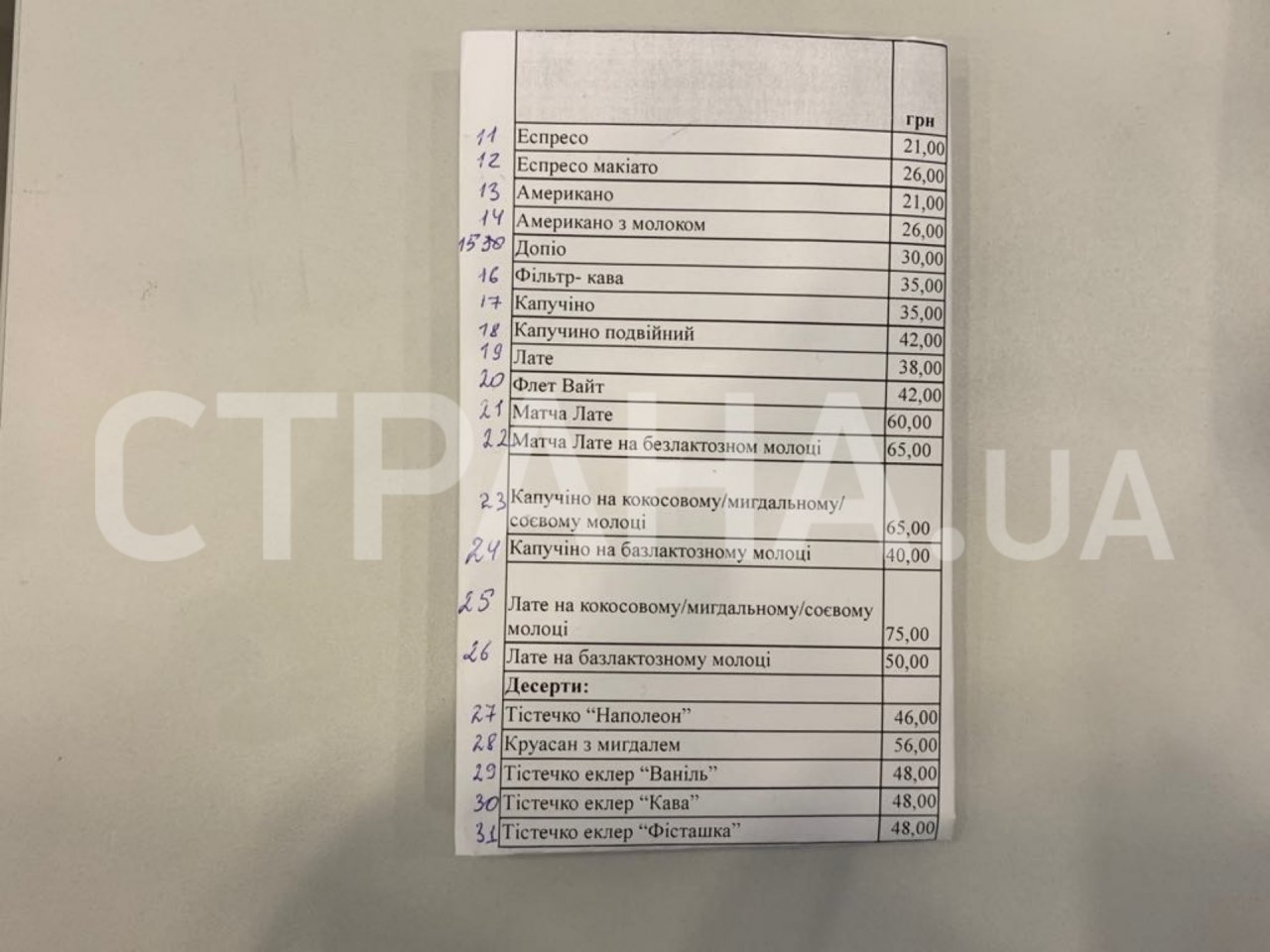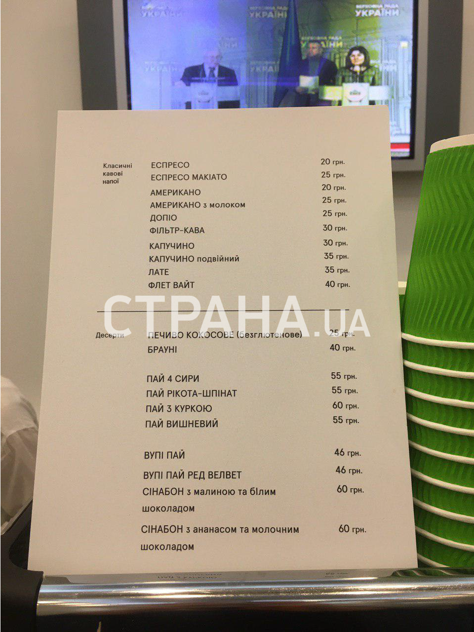 Старое меню кофейни в Верховной Раде. Фото: Страна