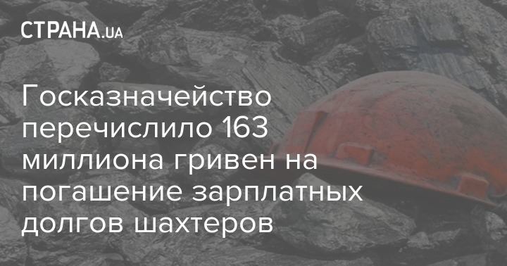 Сумму в 163 миллиона гривен перечислила Государственная казначейская служба Украины на выплаты зарплат шахтерам. Деньги получат предприятия "Шахта им. М.С. Сургая", "Шахтоуправление", "Южнодонбасское №1", "Мирноградуголь", "Селидовуголь", "Торецкуголь", "Первомайскуголь", "Лисичанскуголь", "Львовуголь", "Волыньуголь".