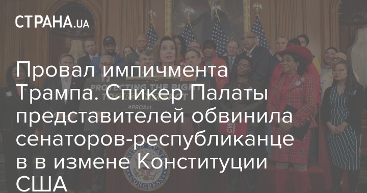 Так, спикер Палаты представителей Нэнси Пэлоси (которая демонстративно порвала речь Трампа в Конгрессе - Ред.) прямым текстом обвинила сенаторов-республиканцев в государственной измене.