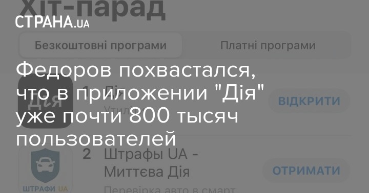"Дія - первая в рейтинге украинского App Store в категориях Utilites и Топ-бесплатных + первая в рейтинге топ-бесплатных в Play Market. Вчера приложение продержалось на 6 позиции в украинском поиске App Store, в американском - на первой", - добавил Федоров.