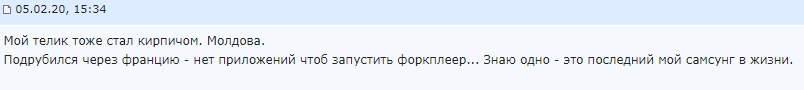 Подрубился через Францию - нет приложений, чтобы запустить форкплеер... Знаю одно - это последний мой самсунг в жизни".