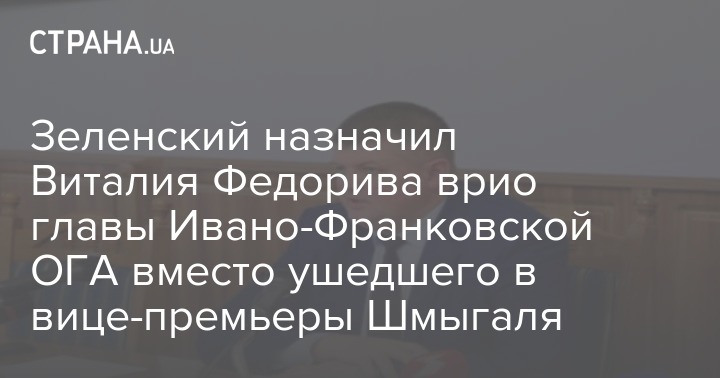 Заместитель главы Ивано-Франковской областной государственной администрации Виталий Федорив назначен на должность временно исполняющего обязанности главы ведомства. Об этом говорится в Указе президента Владимира Зеленского, опубликованном на сайте главы государства.