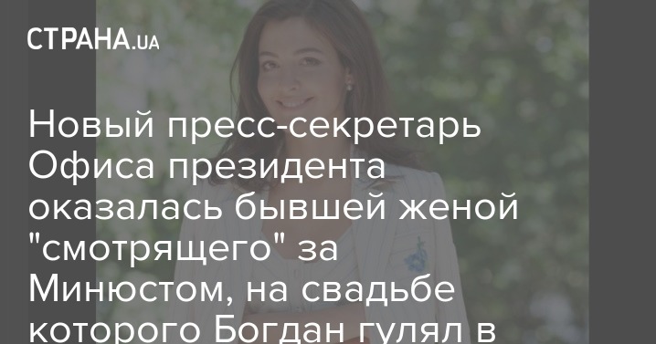 Новый пресс-секретарь Офиса президента Дарья Заривная является бывшей женой известного юриста Андрея Довбенко, которого в СМИ называли во времена Порошенко "смотрящим за Минюстом". Довбенко стал известен широкой общественности после того, как на его свадьбе в  Сен-Тропе погулял Андрей Богдан.