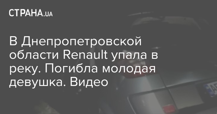 В Верходнепровске Днепропетровской области автомобиль Renault Megane упал в реку Самоткань. В результате трагедии погибла молодая девушка, а водитель 1970 года рождения доставлен в больницу.