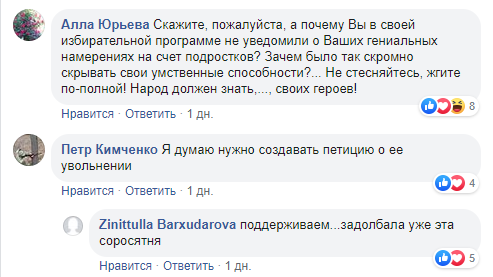 Они возмущались, почему нардеп не проинформировала о такой инициативе до выборов и обсуждали ее увольнение.