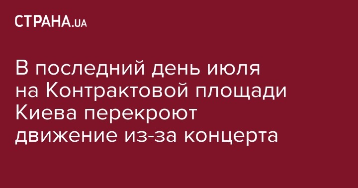 31 июля на Контрактовой площади в Киеве будет частично ограничено движение транспорта из-за проведения благотворительного концерта. Об этом сообщает в пресс-службе КГГА.