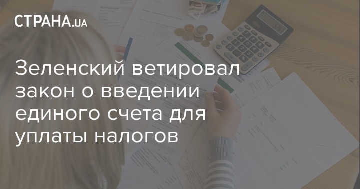 Президент Украины Владимир Зеленский наложил вето на закон о введении единого счета для уплаты налогов и сборов, единого взноса на общеобязательное государственное социальное страхование (проект № 1049).